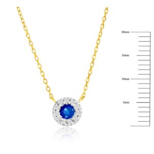14 Karat Yellow Gold and Diamond Sunburst Design Disc Necklace