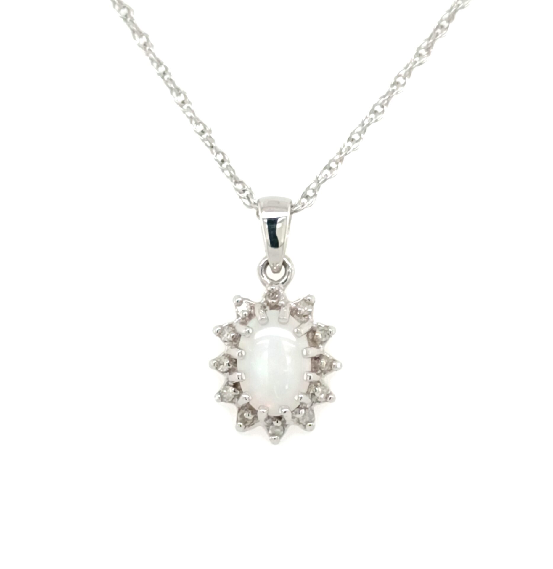 10 Karat White Gold Opal And Diamond Halo Pendant With 1 Oval Opal And 12 Diamonds .06CTW