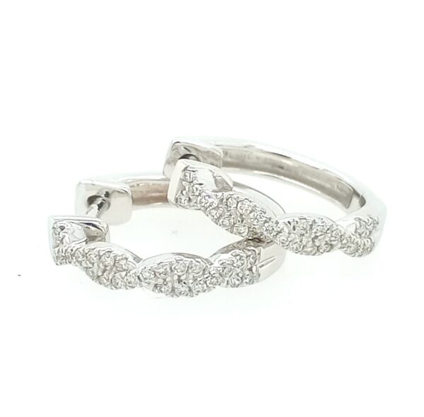 14 Karat White Gold Diamond Small Twisted Hoop Stud Earrings .15 CTW