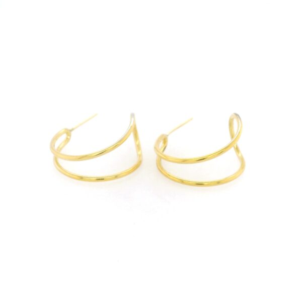14K Yellow Gold Plated Metal Medium Double Hoop Earrings, Approximately 22mm, New Gold Filled Earring Backs