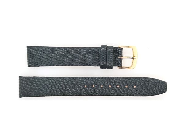 18L Black Genuine Leather Lizard Grain Watch Band, 18mm Long