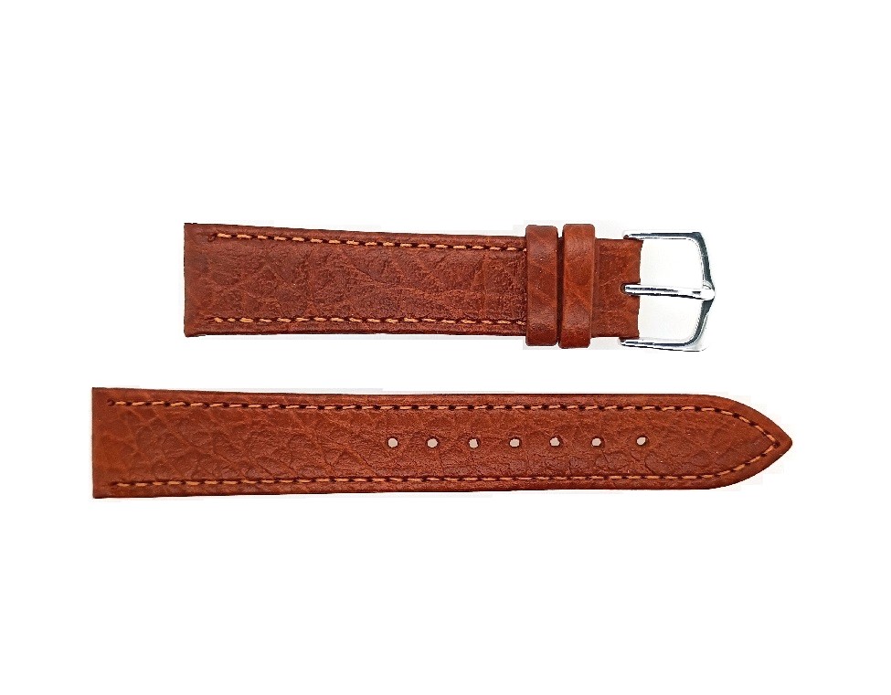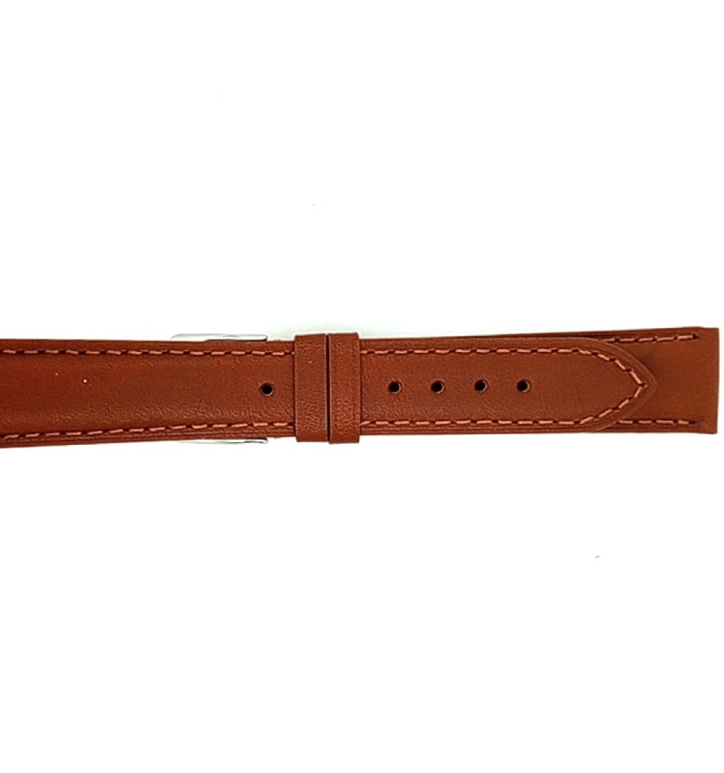 18R Chestnut Genuine Leather Stitched Medium Padded Watch Band, 18mm Regular