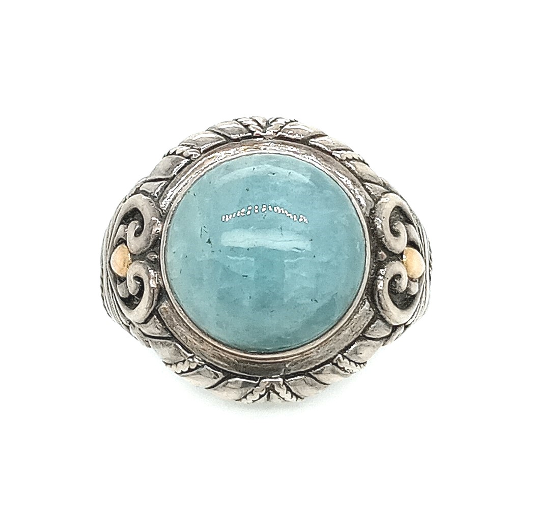 Sterling Silver & 18K yellow Plated Milky Aquamarine Ring