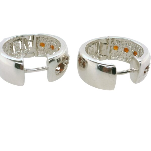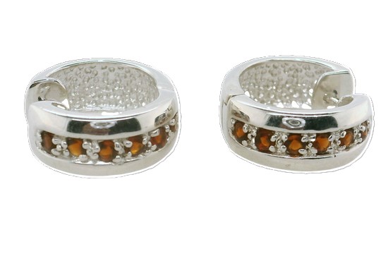 Sterling Silver Huggie Hoop Earrings with 6 round Natural Garnets approximately 2mm each