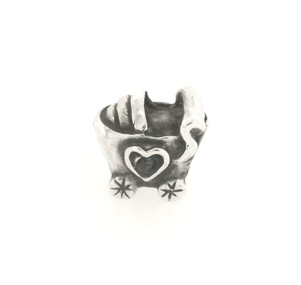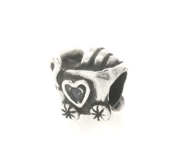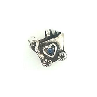 Sterling Silver RCI Baby Carriage Bead With A Blue Crystals On Each Side
