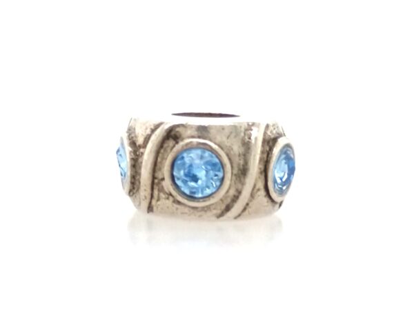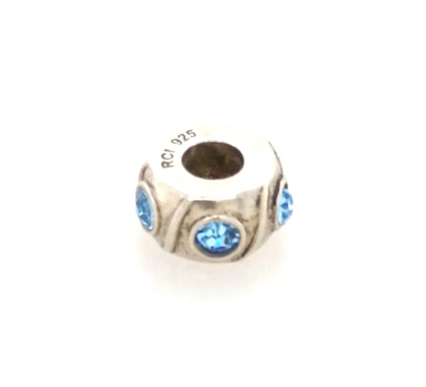 Sterling Silver RCI Bead With Swirls And Light Blue Crystals