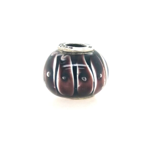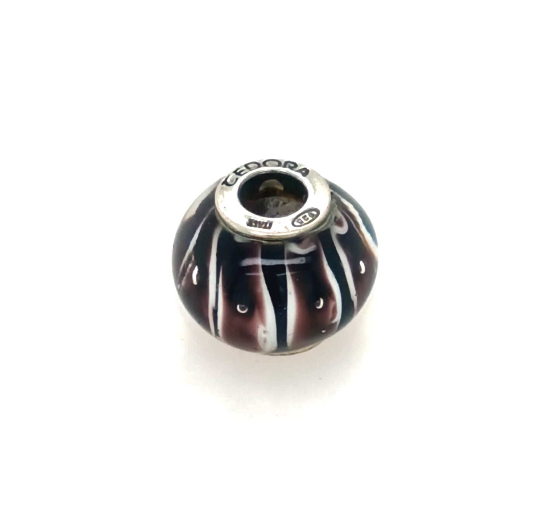 Sterling Silver Cedora Black, White and Purple Glass Bead – Italy