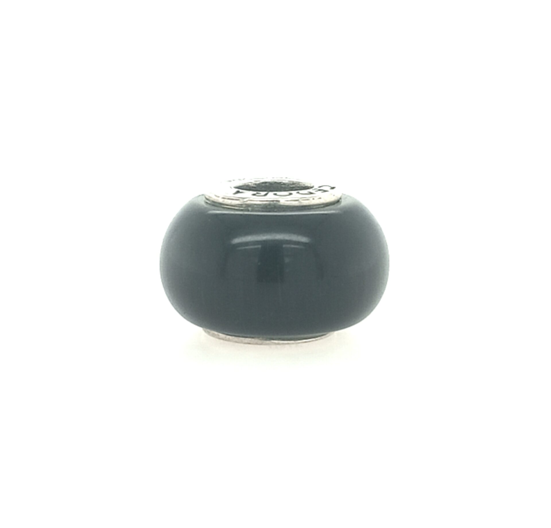 Sterling Silver Cedora Black Glass Bead Italy