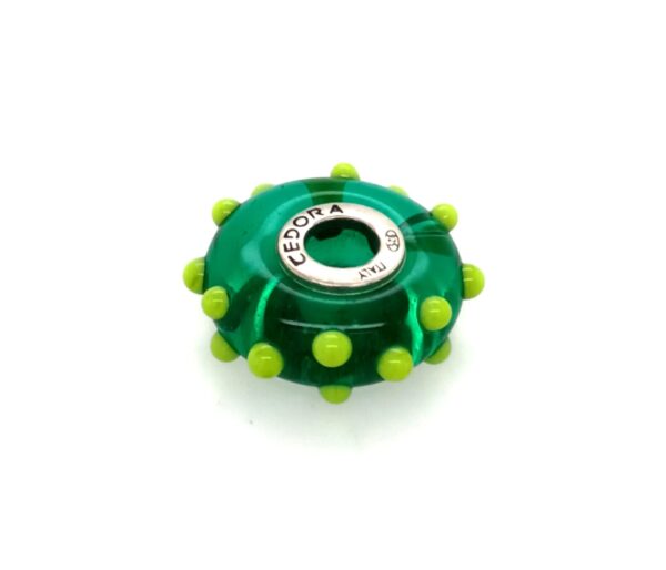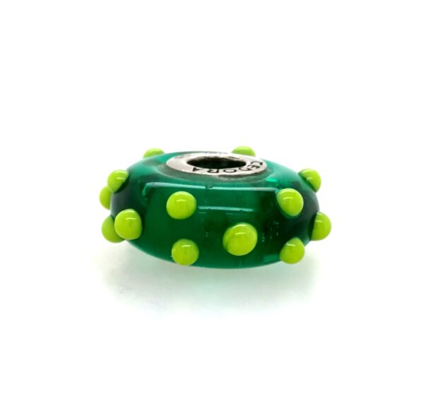 Sterling Silver Cedora Glass Bead Green With Raised Light Green Dots – Italy