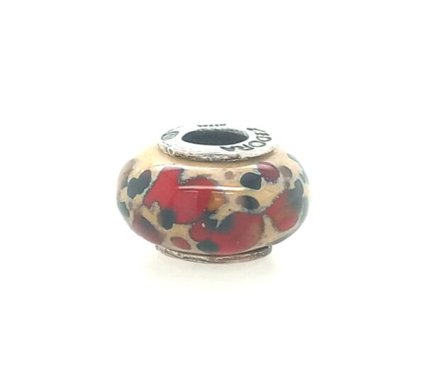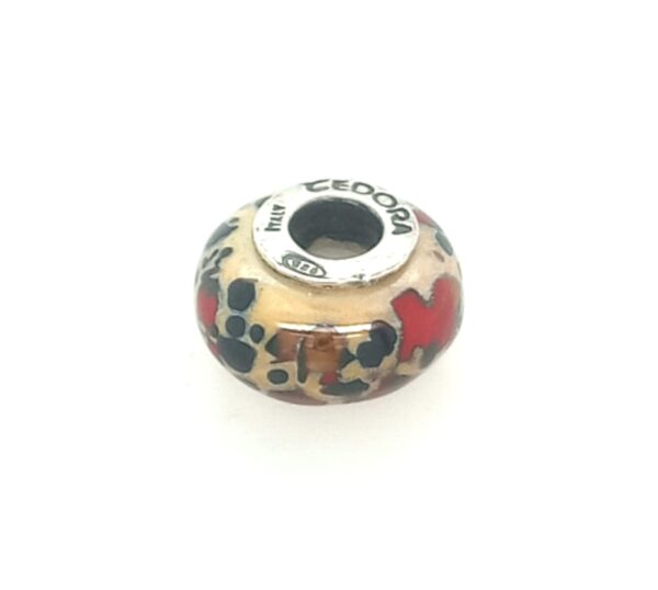 Sterling Silver Cedora Tan, Red, And Black Glass Bead Italy