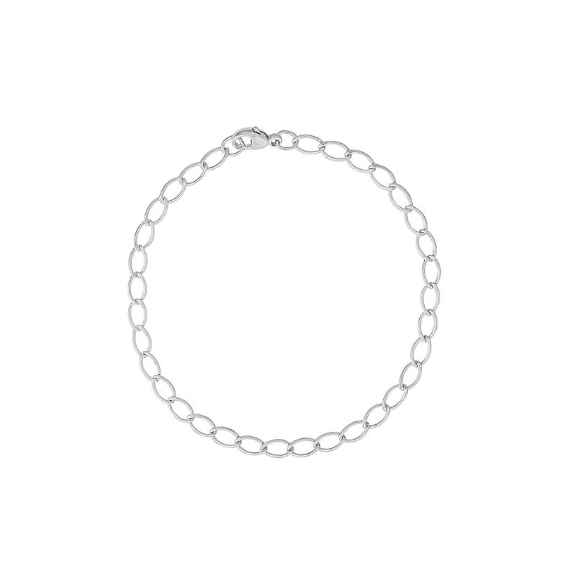 Sterling Silver Rhodium Plated Charm Bracelet With Oval Elongated Links 4 mm 8 inch With Lobster Clasp