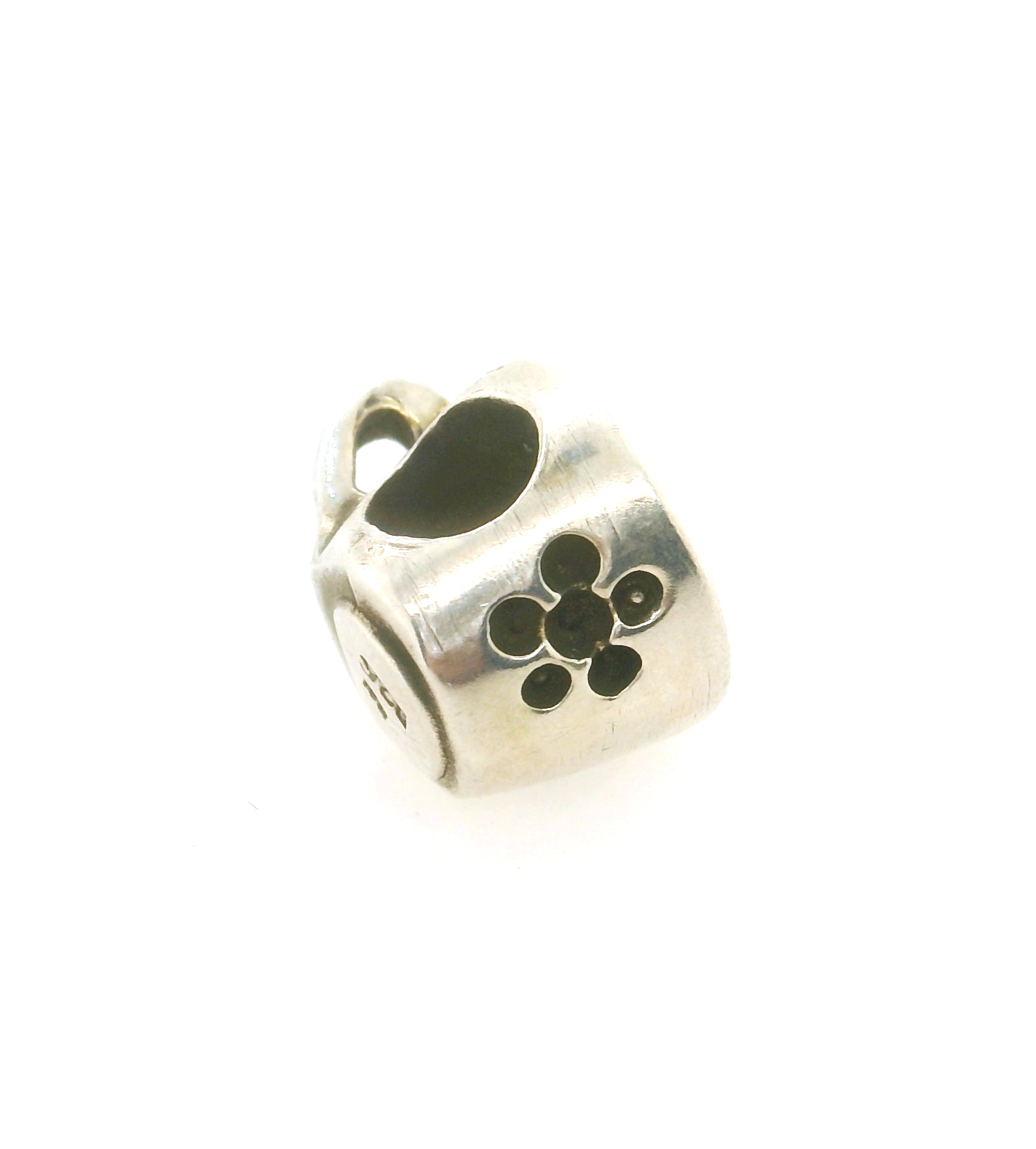 Sterling Silver RCI Coffee Or Tea Cup Bead With Flower Design
