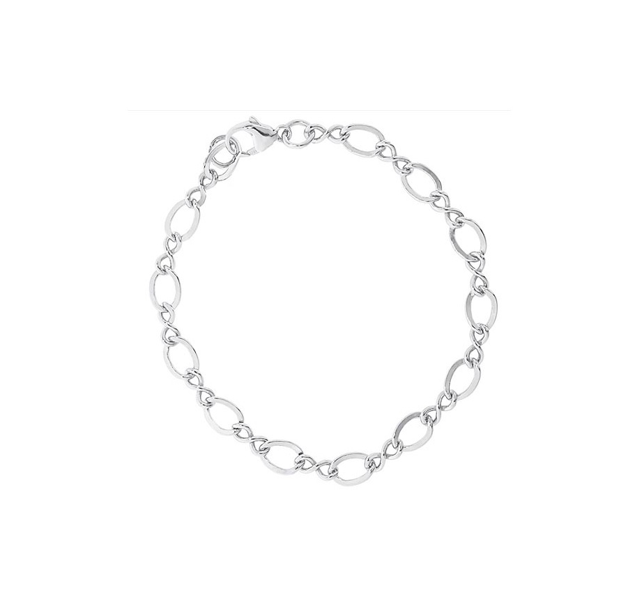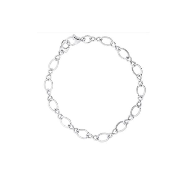 Sterling Silver Rhodium Plated Curb Charm Bracelet With Oval And Figure Eight Links, 4.83 mm 8 inch With Lobster Clasp