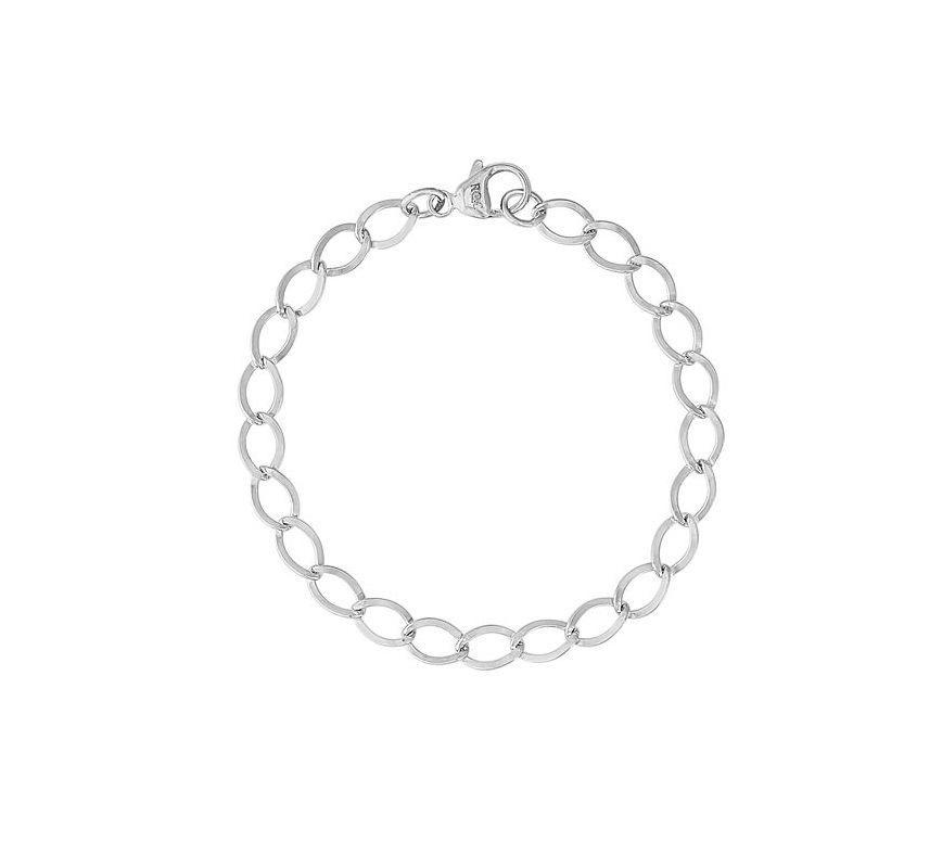 Sterling Silver Rhodium Plated Curb Charm Bracelet 4.71 mm 8 inch With Lobster Clasp