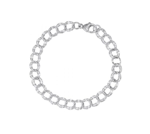 Sterling Silver Double Curb Link Charm Bracelet 8″