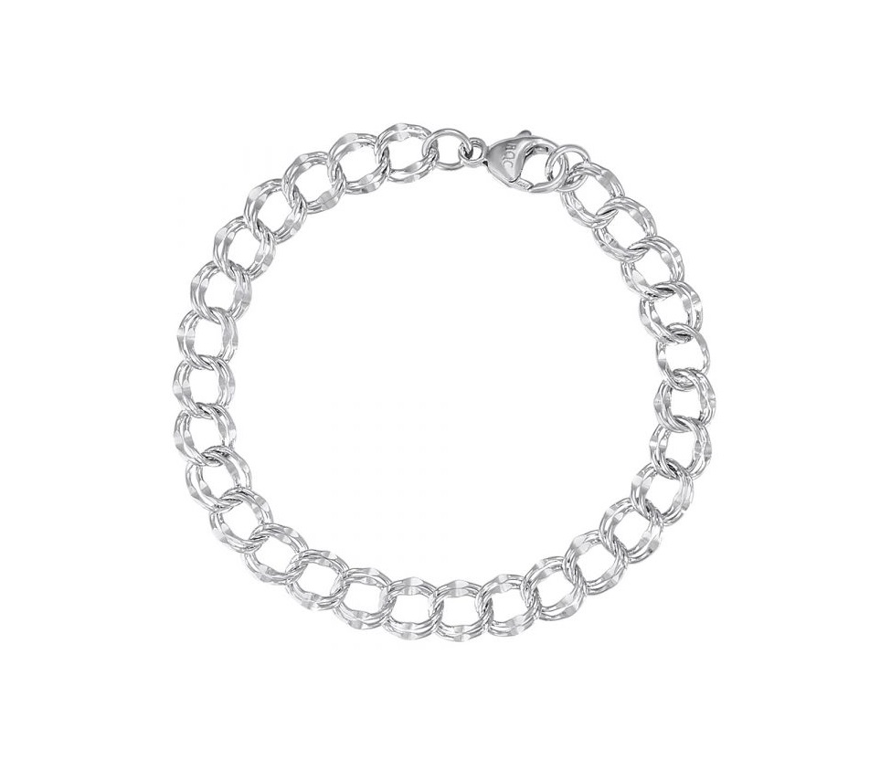 Sterling Silver Rhodium Plated Charm Bracelet With Double Curb Links, 7.6 mm 8 Inch With Lobster Clasp