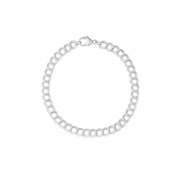 Sterling Silver Double Curb Link Charm Bracelet 8″