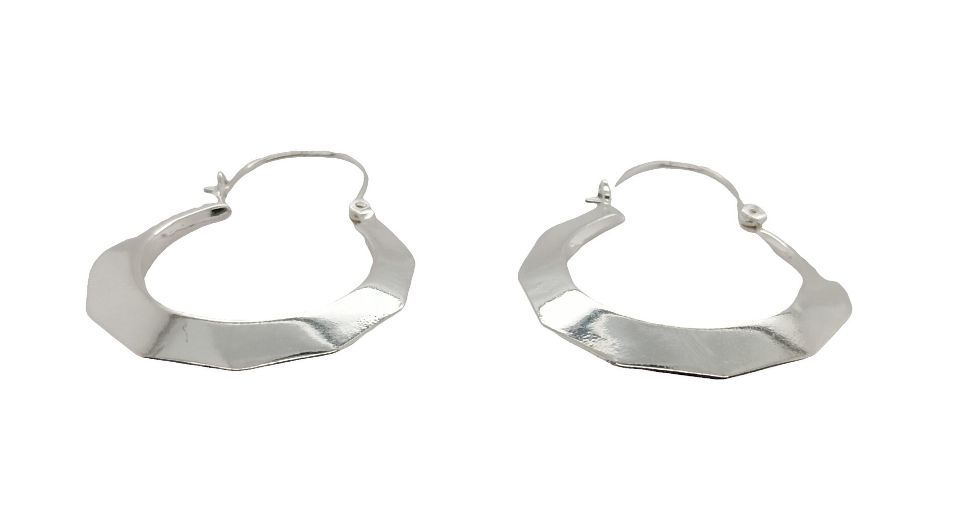 Sterling Silver, Faceted Hoop Earrings with Wire closure