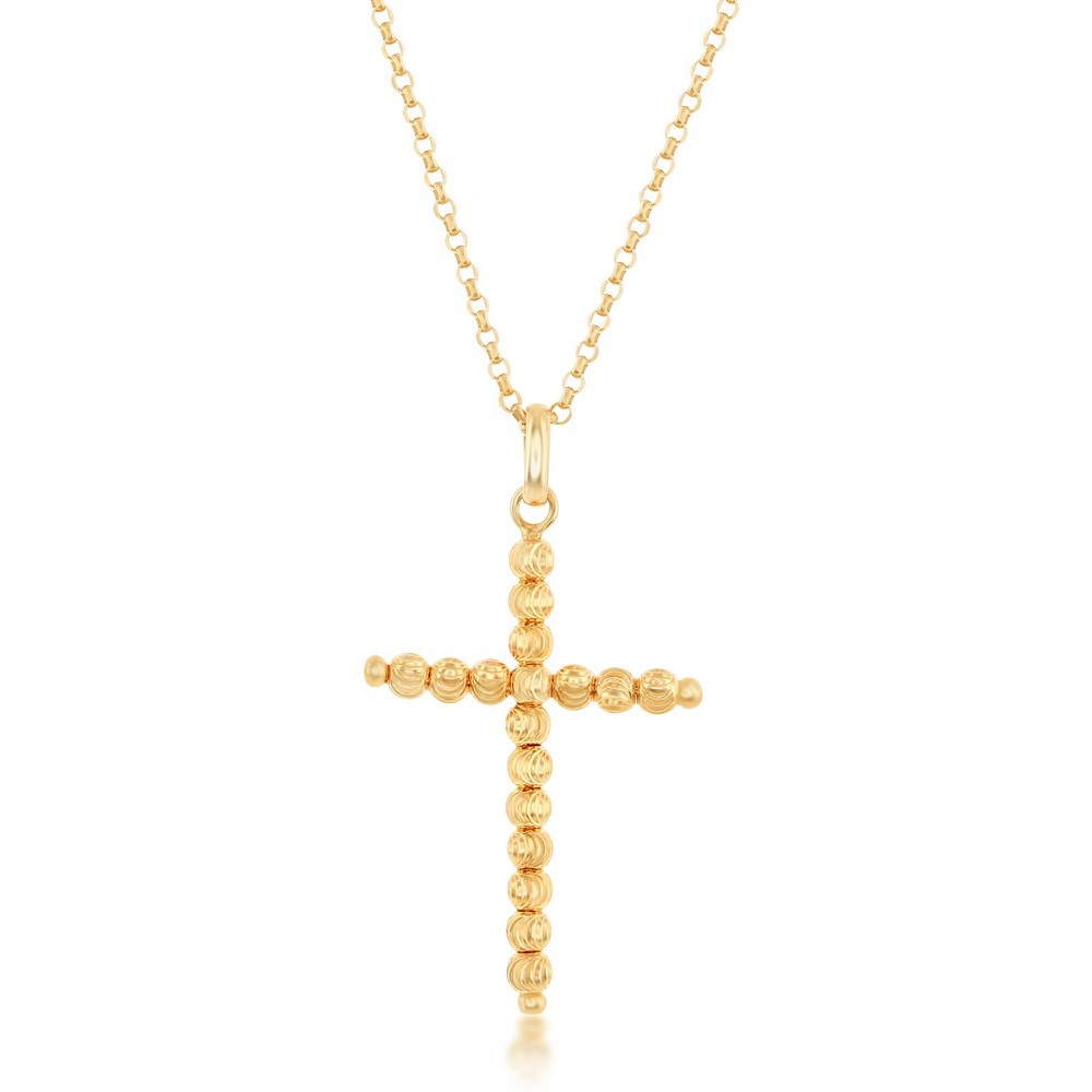 Sterling Silver, Gold Plated Beaded Cross Necklace, total of 18 inches (16+2)