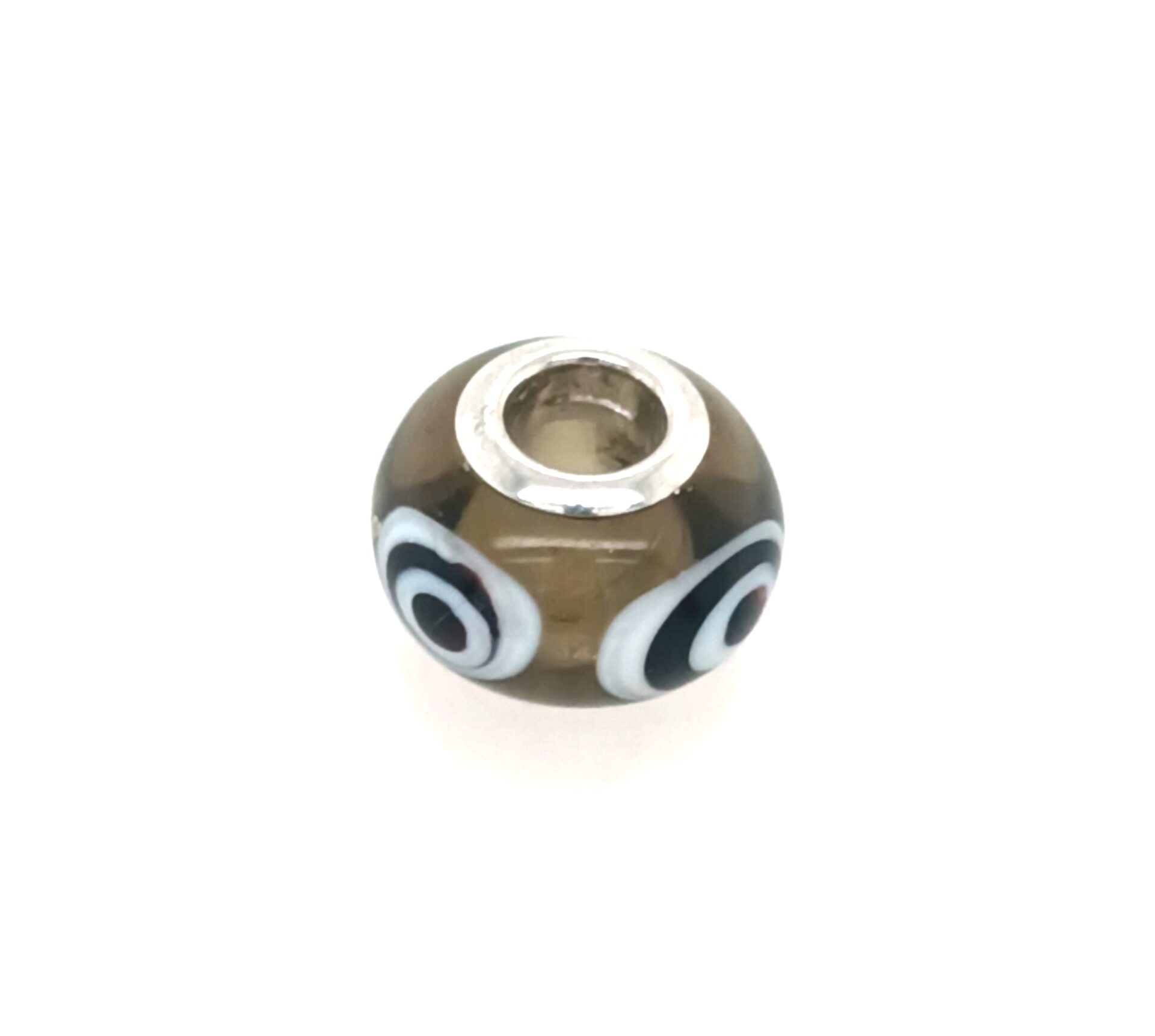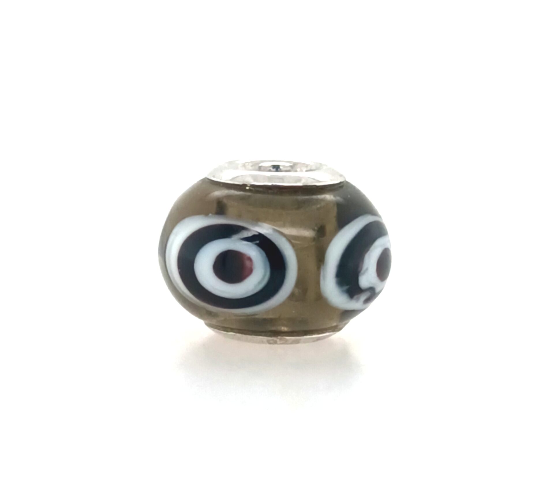 Sterling Silver RCI Gray-Brown Glass Bead With Black And White Bulls Eyes