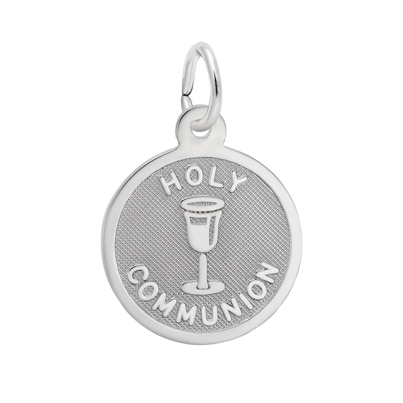 Sterling Silver Rhodium Plated Holy Communion Disc Charm, 0.56 in x 0.56 in, Engravable On Back