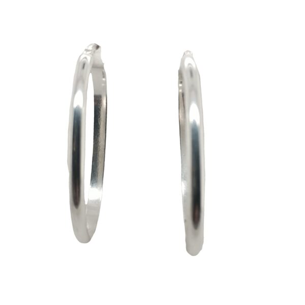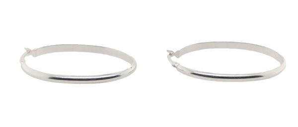 Sterling Silver, Large Oval Shaped Hoops with latch closure. Approximately 38mm in length