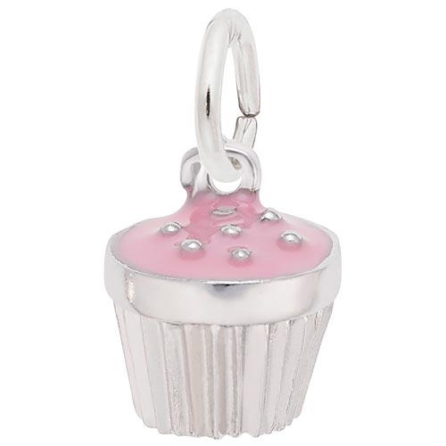 Sterling Silver Pink Frosted Cupcake 3D Charm