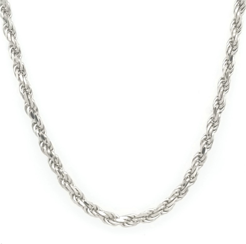 Sterling Silver, Platinum Plated Rope Chain 2.3mm, Length 22″