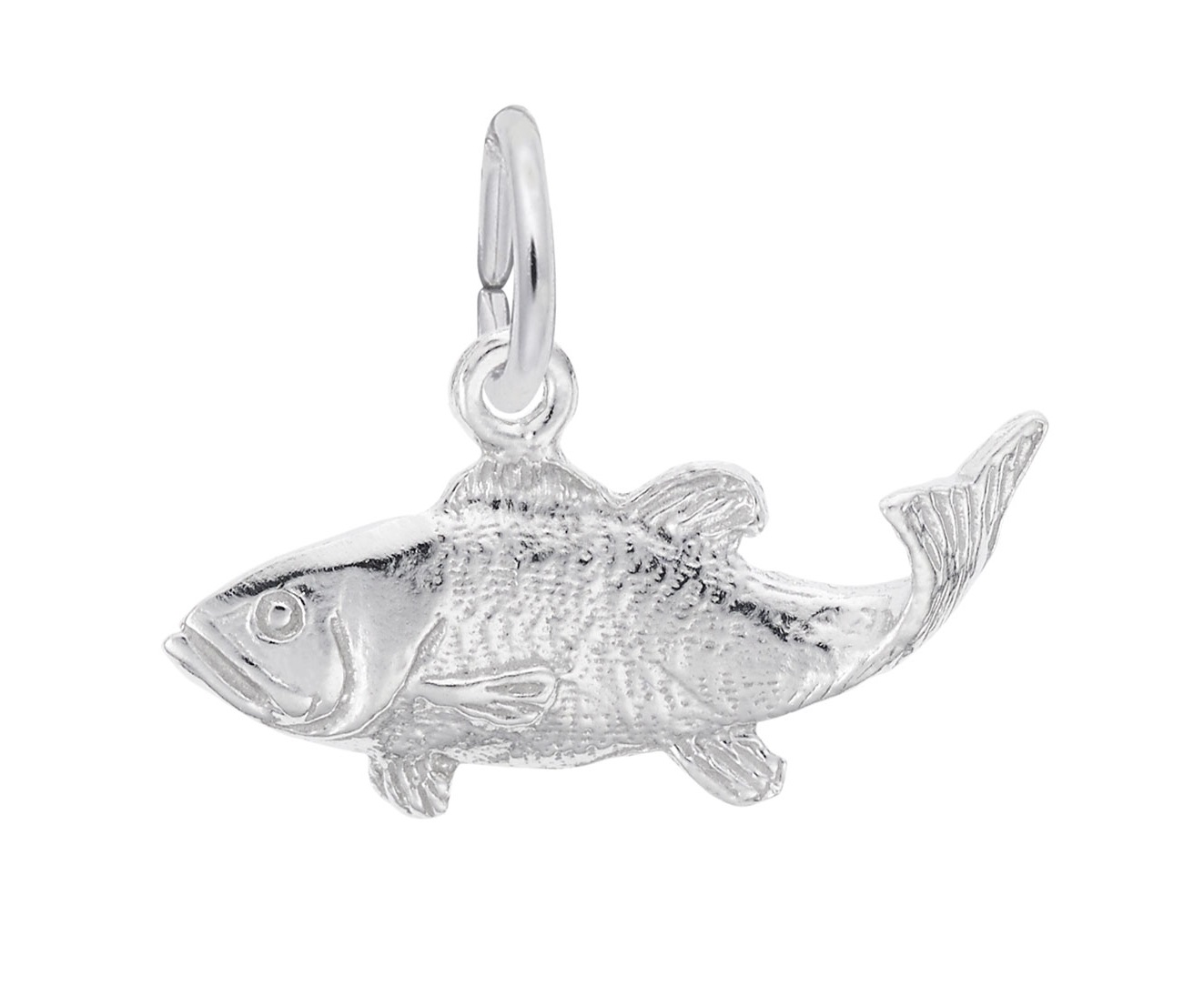 Sterling Silver Rhodium Plated Bass Fish Charm 0.76 in x 0.32 in quantity