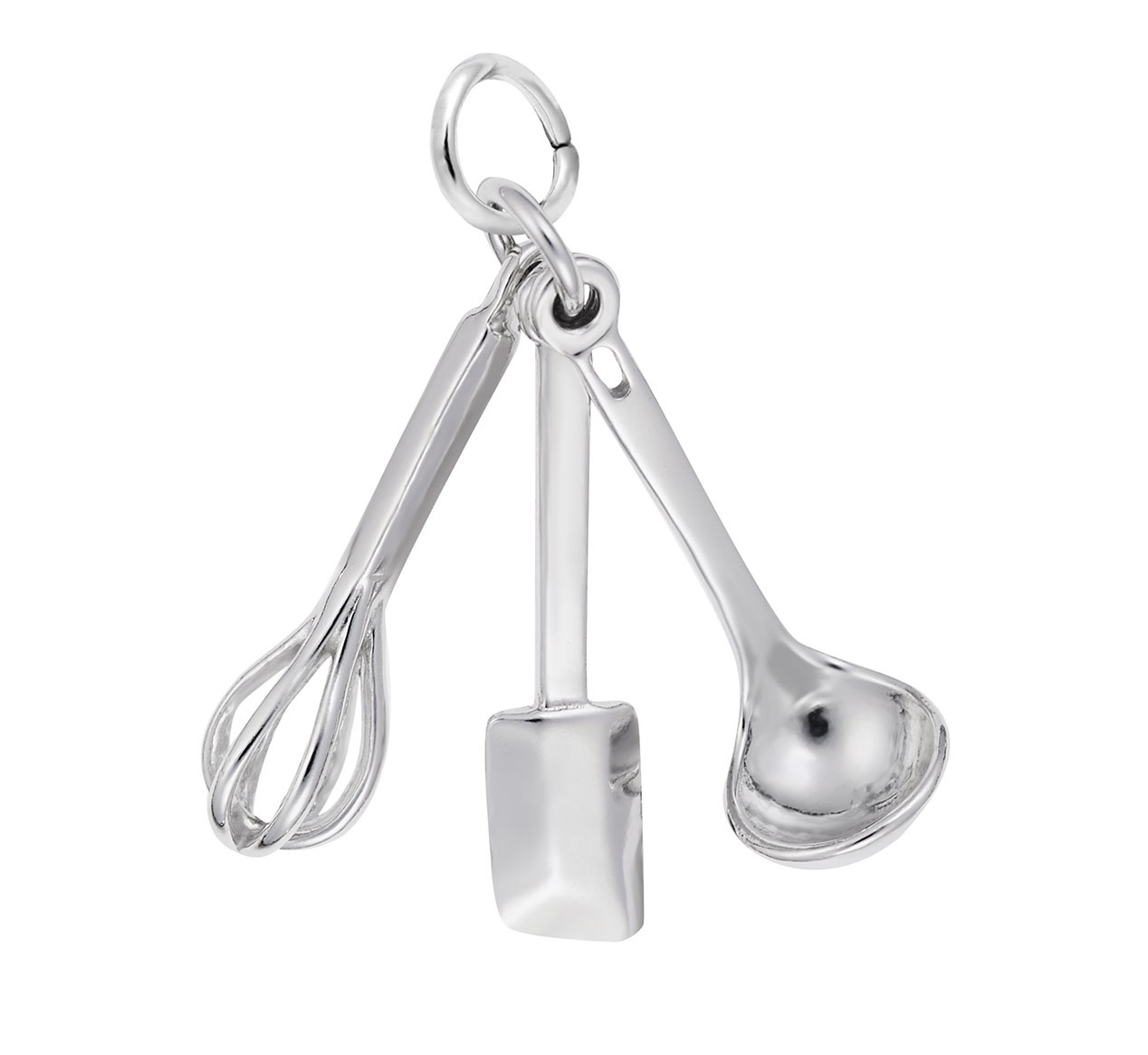 Sterling Silver Rhodium Plated Cooking Utensils Charm