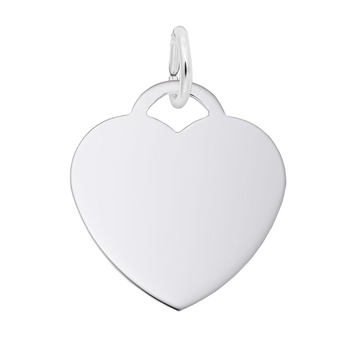 Sterling Silver Rhodium Plated Medium Heart Engravable Charm 0.69 in x 0.77 in
