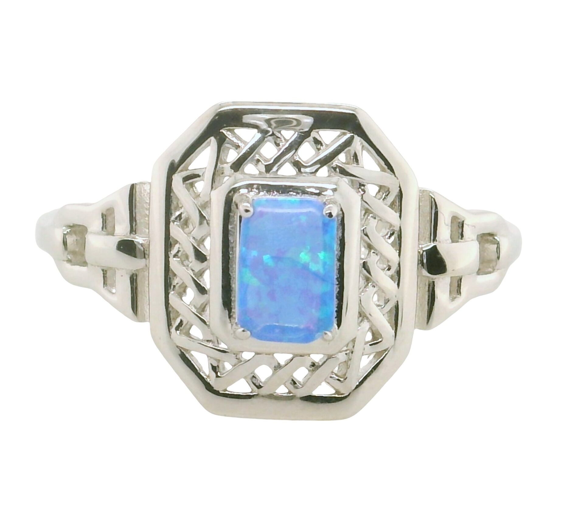 Sterling Silver ring with Lab Created Blue Opal, approximately 6x4mm, size 9