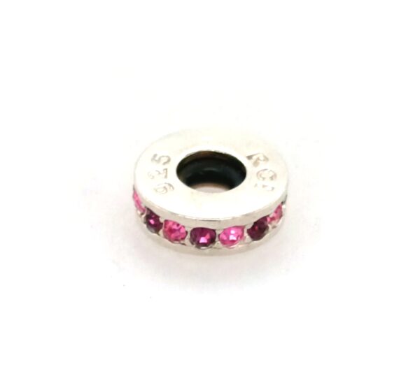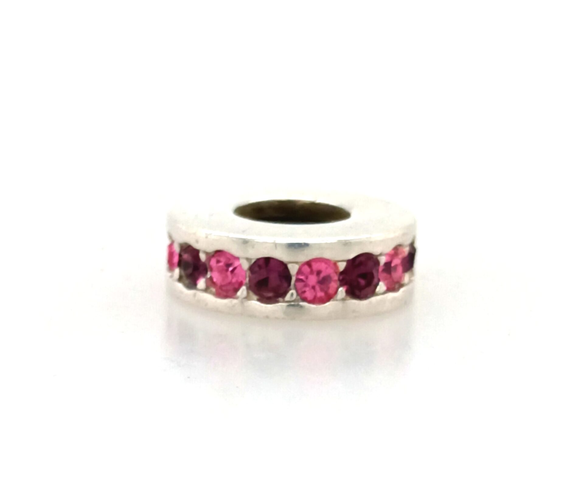 Sterling Silver RCI Stopper Bead With Burgundy And Pink Crystals