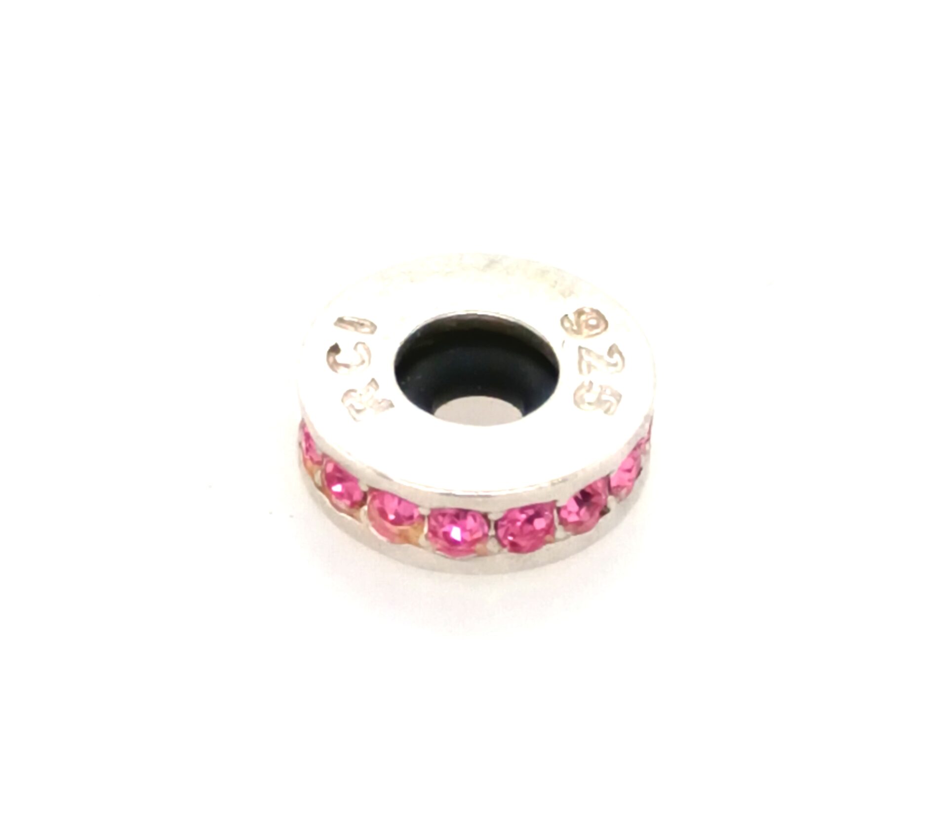 Sterling Silver RCI Stopper Bead With Pink Crystals