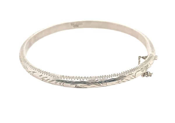 Sterling Silver Vintage Etched Design Hinged Bangle 5mm
