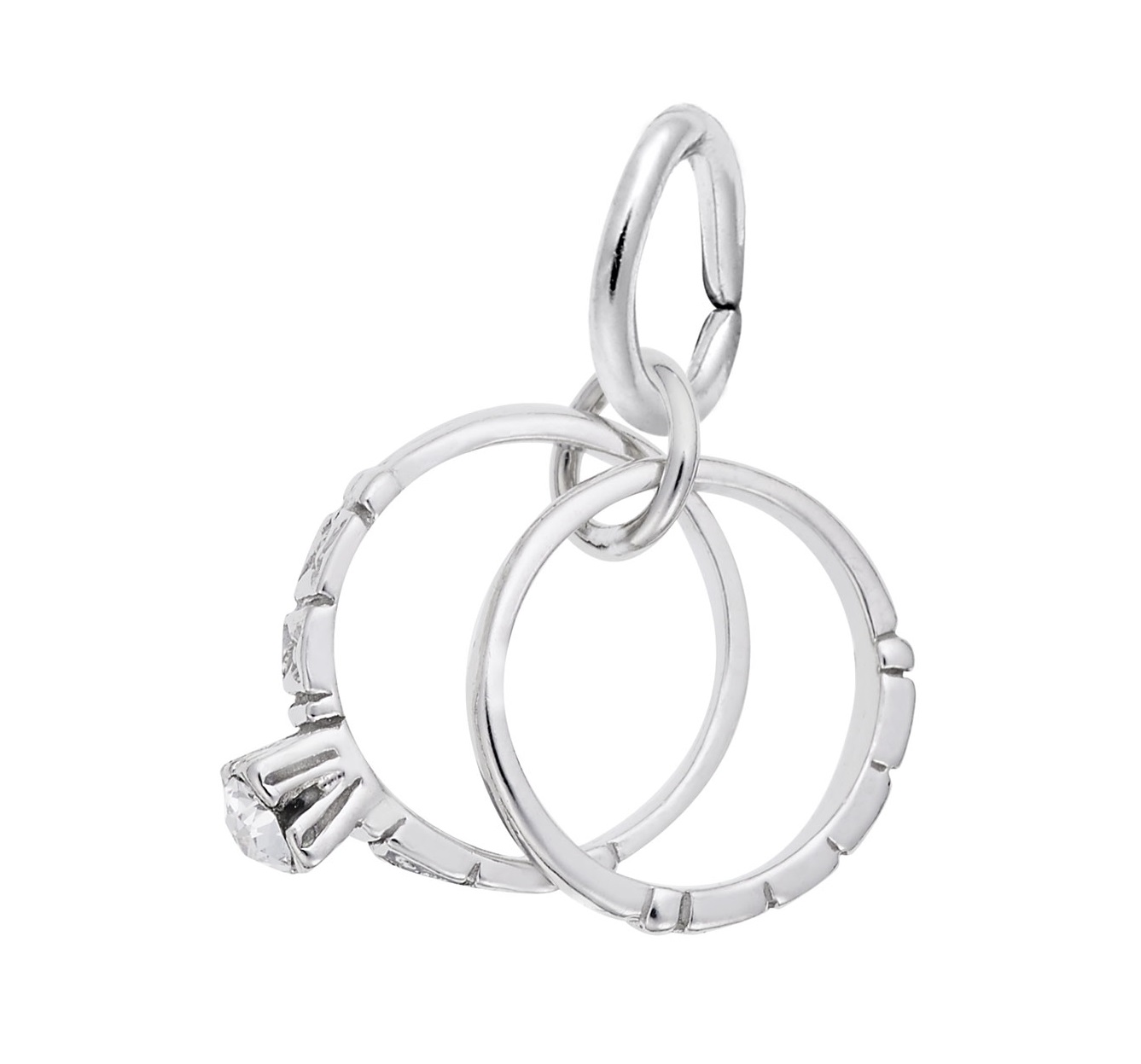 Sterling Silver Rhodium Plated Wedding Rings Charm, 0.44 in x 0.51 in