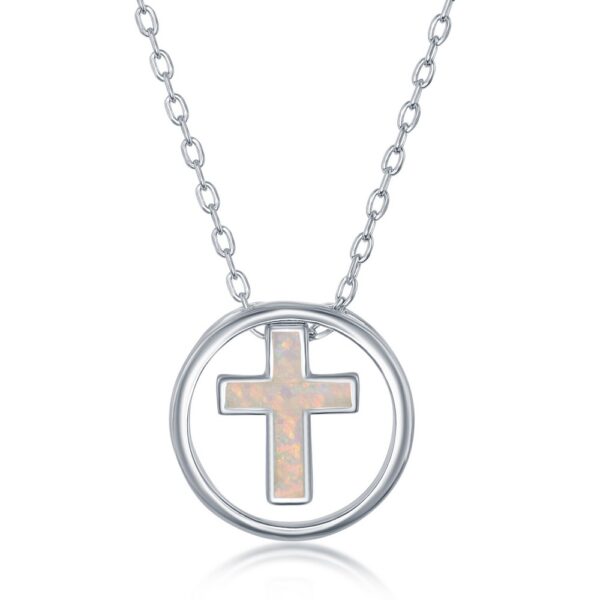 Sterling Silver White Inlay Opal Cross Necklace