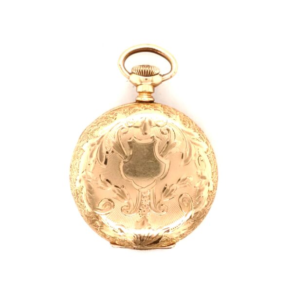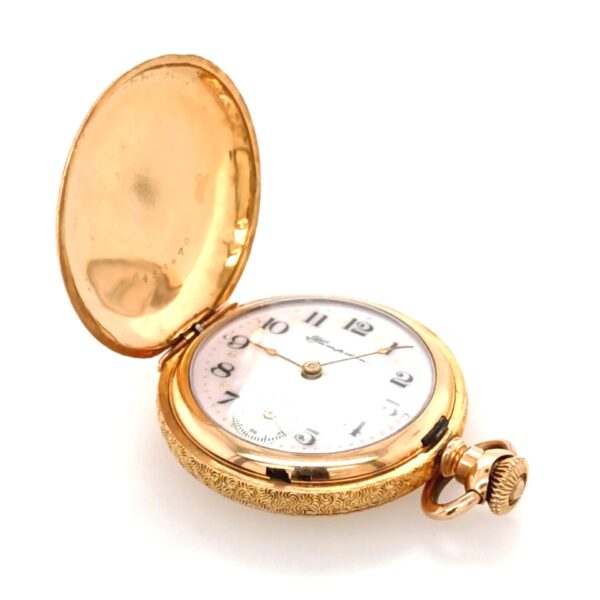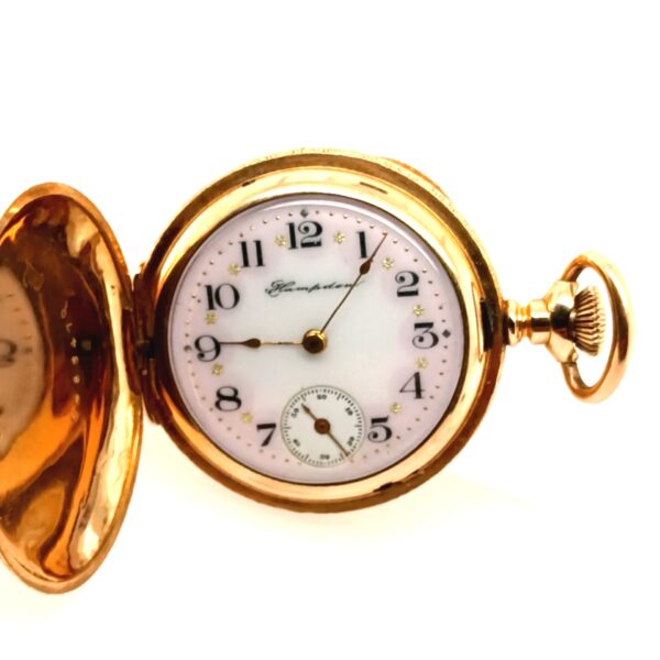 Vintage Hampden Diadem Canton O. 14K Gold Filled Pocket Watch, Case 6486470, Lever Set, White And Light Pink Dial, Recently Srviced, Approx 1 1/8″ Wide