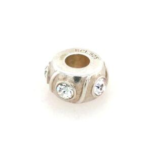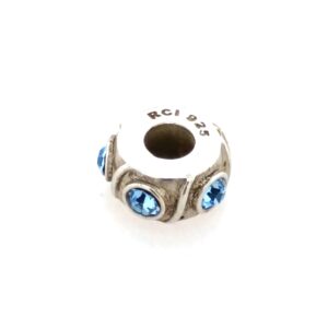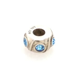 Sterling Silver Bead With Swirls & Light Blue Crystals