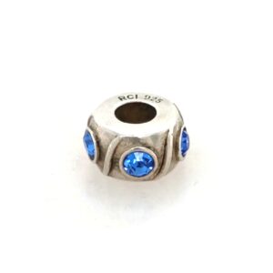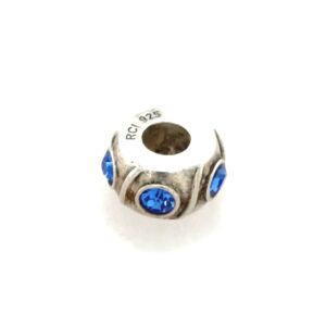 Sterling Silver Bead With With Swirls & Blue Crystals
