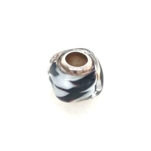 Sterling Silver Black & White Swirled Glass Bead