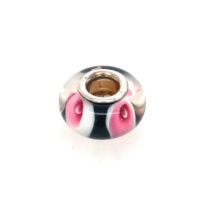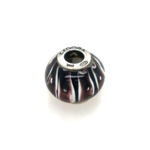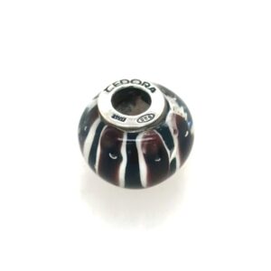 Sterling Silver Black, Orange-Brown & White Glass Bead