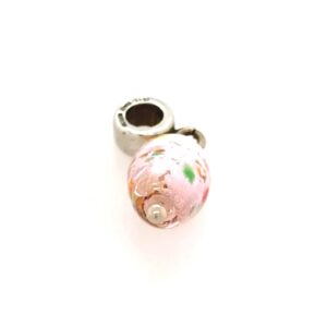 Sterling Silver Dangle Pink Glass Bead With Colored Flecks
