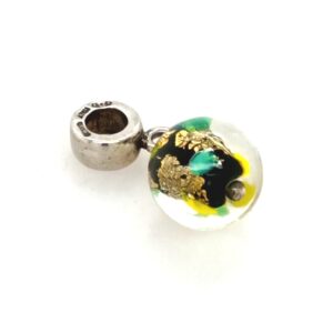 Sterling Silver Dangle Clear Glass Bead With Gold, Black, Green & Yellow